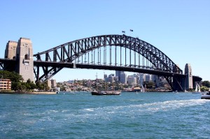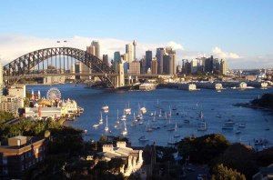 I arrived a week before Judy and prepared our North Sydney love nest. North Sydney, across the famous Sydney Harbour Bridge from downtown, is a business center that is nearly a ghost town after hours. Like San Francisco, it is incredibly steep. The land undulates, rising right out of the bay. From our love nest hotel room perched atop the hills, I could see the boardwalk amusement park below and across the bay, the famous Sydney skyline.