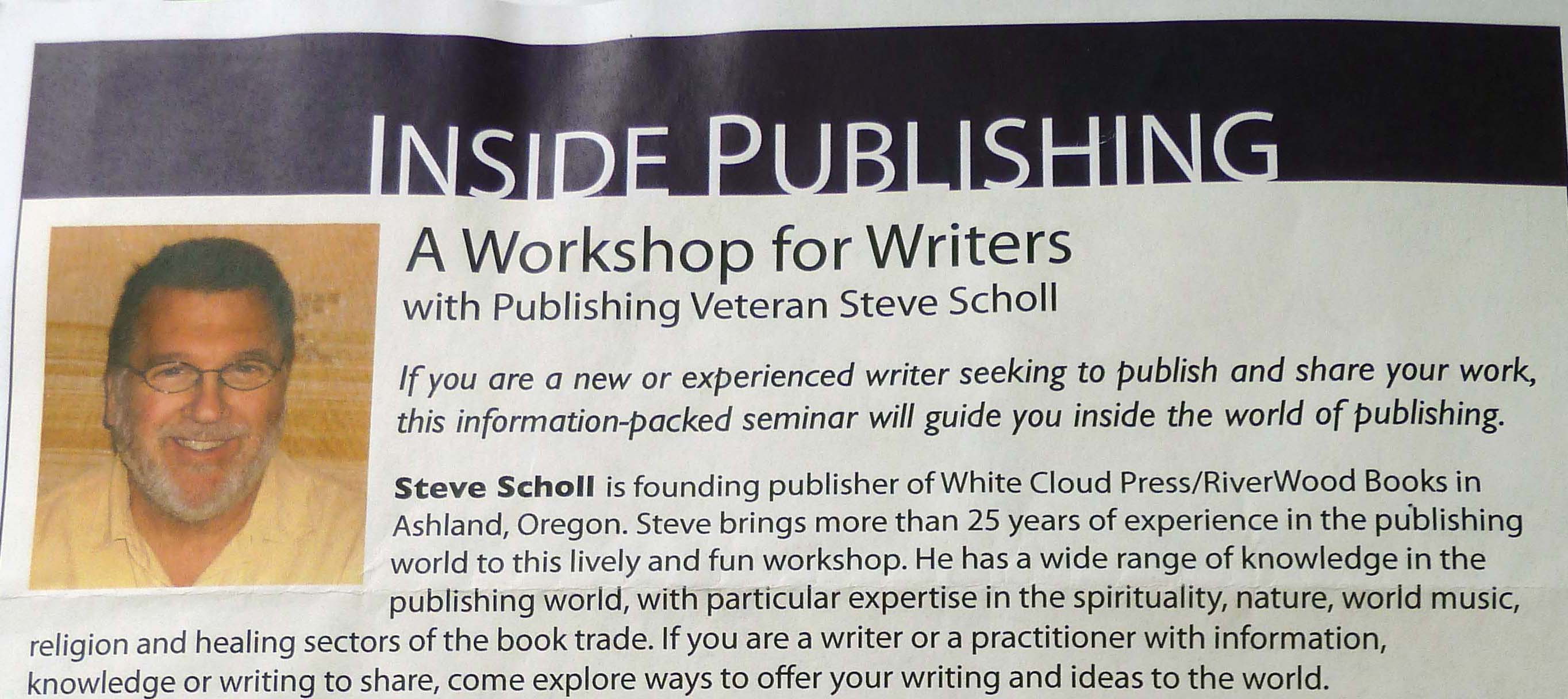 The Publishing King was holding court at a local bookstore cafe. I guess a bookstore is a fitting throne-room if your supplicants are all writers. Surrounded by books on their shelves, his faithful subjects reading, and the smell of rather pedestrian coffee, Steve was just ending his previous appointment as Judy and I walked up to his table.