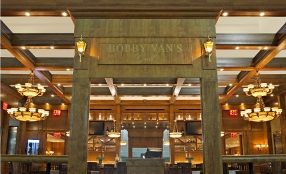 With two hours before the Paris flight, we settled into Bobby Van’s menu oh so easily: an excellent bottle of Napa Cabernet, succulent fried calamari, perfectly-cooked crisp green beans that snapped in our mouths, a delectable juicy burger for me, and a superbly seared medium-rare ribeye steak for Judy. Yes, this was the way to travel!
